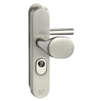 M&C veiligheidsbeslag met kerntrekbeveiliging SKG3 55mm voordeur zorgt ervoor dat je deurcilinder wordt beschermd tegen de kerntrekmethode. Door de combinatie knop/kruk is dit veiligheidsbeslag geschikt voor links- en rechts draaiende voordeuren. Bestemd voor deuren met een dikte van 38-42mm. Het voordeurbeslag is gemaakt van aluminium en heeft naast het Politiekeurmerk Veilig Wonen een SKG3 keurmerk. Producten met het SKG3 keurmerk zijn zelfstandig in staat het binnendringen van inbrekers met ten minste 5 minuten te vertragen. Geleverd als 1 set deurknop-deurkruk inclusief beslag, 1 krukstift, 1 montagering, 3 kruiskopschroeven, 1 inbusschroef in de kleur F9 (RVS) en een duidelijke montagehandleiding. Dit type beslag wordt ook wel buitendeurbeslag genoemd.