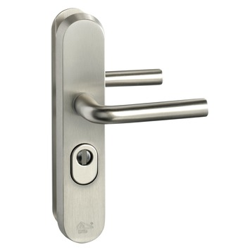 M&C veiligheidsbeslag met kerntrekbeveiliging SKG3 72mm achterdeur zorgt ervoor dat je deurcilinder wordt beschermd tegen de kerntrekmethode. Door de combinatie kruk/kruk is dit achterdeurbeslag geschikt voor links- en rechts draaiende achterdeuren. Bestemd voor deuren met een dikte van 38-42mm. Het buitendeurbeslag is gemaakt van aluminium en heeft naast het Politiekeurmerk Veilig Wonen een SKG3 keurmerk. Producten met het SKG3 keurmerk zijn zelfstandig in staat het binnendringen van inbrekers met ten minste 5 minuten te vertragen. Geleverd als 1 set deurkruk-deurkruk inclusief beslag, 1 krukstift, 3 kruiskopschroeven, 1 inbusschroef in de kleur F9 (RVS) en een duidelijke montagehandleiding.