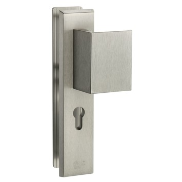 M&C veiligheidsbeslag SKG3 72mm voordeur zorgt ervoor dat je deurcilinder wordt beschermd tegen veel voorkomende inbraakmethodes, zoals de Bulgaarse methode. Door de combinatie greep/kruk is dit veiligheidsbeslag geschikt voor links- en rechts draaiende voordeuren. Bestemd voor deuren met een dikte van 38-42mm. Het voordeurbeslag is gemaakt van aluminium en heeft naast het Politiekeurmerk Veilig Wonen een SKG3 keurmerk. Producten met het SKG3 keurmerk zijn zelfstandig in staat het binnendringen van inbrekers met ten minste 5 minuten te vertragen. Geleverd als 1 set deurgreep-deurkruk inclusief beslag, 1 krukstift, 1 montagering, 3 kruiskopschroeven, 1 inbusschroef in de kleur F9 (RVS) en een duidelijke montagehandleiding. Dit type beslag wordt ook wel buitendeurbeslag genoemd.