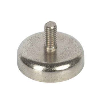 Neodym magneten in een stalen behuizing met schroefdraad. Het stalen omhulsel zorgt voor een hechtkrachtversterking van de magneet op het hechtvlak, terwijl de ingesloten zijden afgeschermd zijn. Met de schroefdraad kunnen accessoires met passende schroefdraad (b.v. moeren) aan de magneet worden bevestigd.