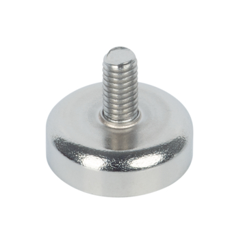 Neodym magneten in een stalen behuizing met schroefdraad. Het stalen omhulsel zorgt voor een hechtkrachtversterking van de magneet op het hechtvlak, terwijl de ingesloten zijden afgeschermd zijn. Met de schroefdraad kunnen accessoires met passende schroefdraad (b.v. moeren) aan de magneet worden bevestigd.