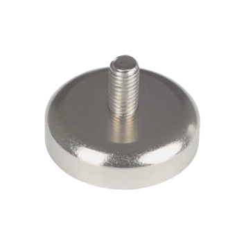 Neodym magneten in een stalen behuizing met schroefdraad. Het stalen omhulsel zorgt voor een hechtkrachtversterking van de magneet op het hechtvlak, terwijl de ingesloten zijden afgeschermd zijn. Met de schroefdraad kunnen accessoires met passende schroefdraad (b.v. moeren) aan de magneet worden bevestigd.