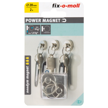 Magneet sleutelhanger Neodymium zilver 20mm 2 stuks