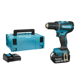 Deze Makita 18V LXT accuboormachine is inclusief 3.0Ah accu, snellader en luxe koffer (MBOX). De accu en oplader zijn te gebruiken bij alle gereedschappen uit het grote Makita LXT accuplatform