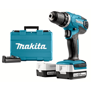De Makita accu boormachine DF347DWE is een krachtige boormachine en is geschikt voor de regelmatige klusser. De 14.4V accu's zijn erg sterk en hebben een capaciteit van 1.5 Ah. Hierdoor is de machine krachtig en kun je ook grotere klussen aan. De accu boormachine is licht van gewicht en is daardoor gemakkelijk te gebruiken. Door de snelspanboorkop kun je snel en eenvoudig wisselen van bitjes of boortjes. De machine beschikt over twee versnellingen zodat je altijd de juiste instelling hebt voor boren (hoog toerental) of schroeven (laag toerental). Hierdoor heb je altijd het juiste vermogen voor je klus. Met deze accuboor kun je tot 25 millimeter in hout boren en tot 10 millimeter in metaal. De Makita accu boormachine DF347DWE wordt geleverd met 2 accu's en een koffer.