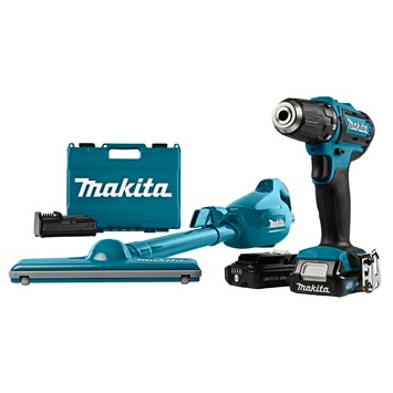 Deze CLX211SA combiset van Makita bestaat uit een 12V Boor-/Schroefmachine + een 12V Steelstofzuiger. De set wordt geleverd met twee 2.0Ah accu's waardoor je eenvoudig de accu's kan verwisselen en altijd kan doorwerken. De set wordt geleverd in een handige koffer.