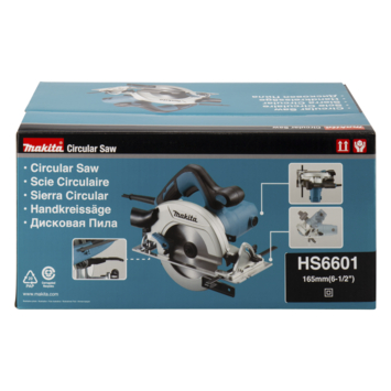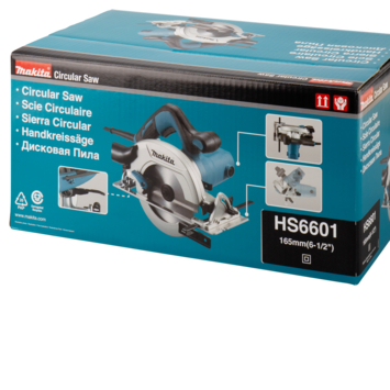 De Makita cirkelzaag HS6601 is een handzame en compacte cirkelzaag met 165 mm zaagblad en weegt slechts 3.7 kg. Daarmee is het de lichtste cirkelzaag die zaagt tot 54.5 mm dik. Het gewicht gaat echter niet ten koste van kracht want de 1050 Watt motor maakt met gemak 5200 toeren per minuut. Hierdoor heeft de Makita cirkelzaag HS6601 een maximale zaagcapaciteit bij afkorten, overlangs zagen en verstek zagen tot 37.5 mm (45° hoek) en 54.5 mm (90° hoek). Met de machine wordt een handige breedtegeleider meegeleverd om overlangs zagen veilig te laten verlopen. Deze geleider helpt eenvoudig de te zagen breedte in te stellen en houdt het zaagblad tijdens het zagen op zijn plek. Dat is niet alleen veilig, maar het geeft ook een kaarsrecht zaagresultaat. Bijkomend voordeel is dat deze machine een laag geluidsniveau heeft, voorzien is van soft grip voor meer controle en comfort en je externe stofafzuiging aan de machine kunt koppelen. Aan de hand van een adapter past de Makita HS6601 ook nog op een geleiderail.