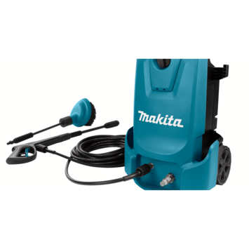 De Makita hogedrukreiniger wordt geleverd met diverse accessoires, waaronder een vuilfrees. Met de vuilfrees kan er hardnekkig vuil worden verwijderd. De hogedrukreiniger heeft onder het model wielen waarmee je deze makkelijk kan verplaatsen.