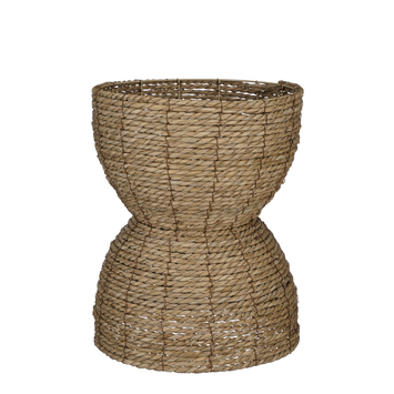 Deze mand is gemaakt van gedroogd gras dat meesterlijk aan elkaar is gevlochten. Zijn bruine kleur zorgt voor een natuurlijke uitstraling en past in elk interieur. De mand heeft een hoogte van 41 cm en een diameter van 32 cm. Een leuk idee om een plant die in een saaie en standaardpot zit een metamorfose te geven om zo nog meer te stralen. Maar ook zonder plant staat de mand er erg decoratief bij.