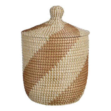 Creëer meer sfeer in je interieur met behulp van deze opbergmand. De mand is gemaakt van natuurlijk zeegras en voorzien van een trendy motief in de kleuren; bruin met wit. Leuk om bijvoorbeeld ergens in een hoek te plaatsen voor een elegante uitstraling in je interieur. De mand meet H45 x ø31 cm. Ook verkrijgbaar in de maten H52 x ø37 cm en H65 x ø45 cm. Ideaal om wat spullen in op te bergen. Waar zet jij deze stijlvolle opbergmand neer?