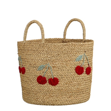 Versterk de sfeer van je interieur met deze stijlvolle opbergmand. De mand is gemaakt van zeegras en is leuk geborduurd met een motief van kersjes. De mand is prachtig geweven en dankzij de handvatten kun je de mand eenvoudig verplaatsen. De mand is H34 x ø36 cm groot.