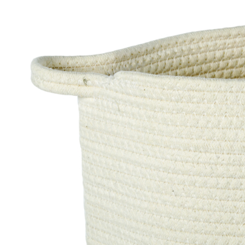 Decoratief gevlochten mand om wat spullen in op te bergen. Eventueel ook erg leuk als bloempot (gebruik een waterdichte binnenpot) of als wasmand.