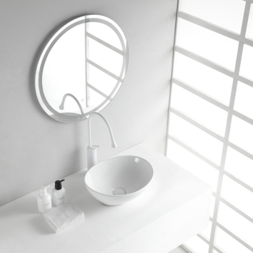 Hou je van een lichte, glanzende look in de badkamer? Dan is deze witte waskom van Ablua iets voor jou. De glanslaag laat het water makkelijk wegspoelen en geeft je opstelling een frisse uitstraling. De kom is bedoeld voor plaatsing op een blad of meubel, zodat je volop kunt combineren met andere materialen. Denk aan mat zwart kraanwerk of een houtlook blad voor wat meer contrast. De Serene vorm oogt zacht en modern. Met 40 cm lengte is er genoeg ruimte om je handen te wassen, zonder dat het veel plek inneemt. Gemaakt van keramiek, dus goed bestand tegen dagelijks gebruik. Let op: deze wastafel heeft geen kraangat en geen overloop.