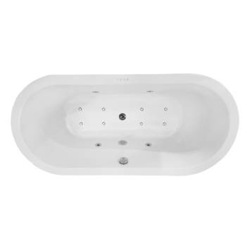Geniet van een spa-ervaring in je eigen badkamer met de Aquero whirlpool. Dankzij de 12 krachtige jets voel je een fijne massage die je helpt ontspannen na een lange dag. Je schakelt eenvoudig tussen verschillende massageprogramma’s en kiest uit drie kleuren verlichting. Zo creëer je precies de sfeer die bij jou past. Het bedieningspaneel zit op de badrand en werkt met druktoetsen. De sproeihoek van de waterstralen stel je makkelijk af naar jouw voorkeur. Dit vrijstaande bad van hoogwaardig acryl is niet alleen slipvast, maar houdt het water ook langer warm. De glanzende afwerking maakt schoonmaken makkelijk, omdat vuil zich nauwelijks hecht. Door de elektrische lekbeveiliging en droogloopbeveiliging gebruik je de whirlpool veilig. Inclusief afvoer en waste in chroomkleur. Met afmetingen van 170 x 80 cm biedt dit bad voldoende ruimte om comfortabel te ontspannen.