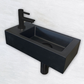 Met deze complete fonteinset geef je je toiletruimte een moderne en verzorgde uitstraling. Alles is uitgevoerd in mat zwart: van de keramische fontein tot de kraan, sifon en waste. De Ondine S mini fontein is compact en past in vrijwel elke toiletruimte. Het kraangat zit links, net als het plateau waar je makkelijk een zeeppompje op kwijt kunt. De bijpassende toiletkraan heeft een lange handgreep en is makkelijk te bedienen. De design sifon is laag van model en neemt weinig ruimte in beslag. Ook de vaste waste blijft open staan en is geschikt voor fonteinen zonder overloop. Door de matte zwarte afwerking vormt alles één geheel, zonder glans of kleurverschillen. Zelfs het montagemateriaal wordt meegeleverd. Alles wat je nodig hebt, zit in één verpakking. Praktisch en stijlvol tegelijk.