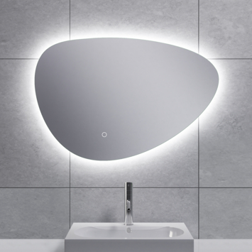 De Huevo spiegel valt direct op door zijn organische vorm en strakke afwerking. Rondom loopt een geïntegreerde LED-lichtbalk die je eenvoudig bedient via de touch-button in het glas. Daarmee stel je traploos de lichtsterkte én de kleurtemperatuur in, van warm wit tot koel wit licht. De instellingen blijven bewaard zolang je de spiegel aan en uitzet via dezelfde touch-knop. Na een uur schakelt de verlichting automatisch uit, wat stroom bespaart. De touch-button zelf blijft altijd zacht oplichten. De spiegel is ook voorzien van een verwarmingsmatje dat condensvorming voorkomt. Zodra je de knop aanraakt, springt het matje aan samen met de verlichting. Eerst verdwijnt de condens in het midden van het glas, daarna wordt de hele spiegel helder. Zo heb je altijd goed zicht, ook na het douchen. Dankzij de IP44-classificatie is de spiegel geschikt voor gebruik in vochtige ruimtes.