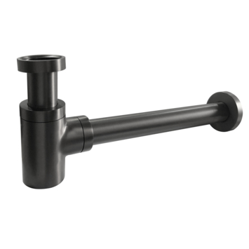 Zoek je een sifon die functioneel is en tegelijk een opvallende, donkere kleur heeft? Deze gun metal uitvoering past perfect onder compacte fonteinen en wastafels. Het lage ontwerp zorgt voor een strakke aansluiting en voorkomt dat de sifon te veel ruimte inneemt. De P-vorm houdt water vast en sluit nare geurtjes buiten. Met een afvoerplugmaat van 1 1/4" (32 mm) sluit je hem makkelijk aan. De muurbuis en rozet maken de afwerking netjes af. De rechte buis geeft het geheel een moderne uitstraling.