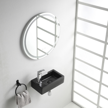 Op zoek naar een fontein die compact is én karakter toevoegt aan je toilet? Dan zit je goed met deze Ondine M in mat zwart. Het formaat van 40 x 22 cm is ideaal voor kleine ruimtes. Het kraangat zit links, handig als je leidingwerk zich aan die kant bevindt. De strakke, rechthoekige vorm en de matte afwerking zorgen voor een moderne uitstraling. Je kiest zelf de kraan, waste en sifon, dus je kunt het helemaal naar wens samenstellen. Deze fontein heeft geen overloop. Gebruik daarom een vaste waste in plaats van een clickwaste. Het gladde keramiek is makkelijk schoon te maken en goed bestand tegen dagelijks gebruik.