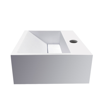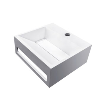 Deze Silara fontein is compact en slim ontworpen. De open ruimte onder de wasbak is ideaal om een handdoek aan te hangen. Zo heb je altijd een doekje bij de hand zonder extra accessoires aan de muur. De fontein is 30 cm breed, 28 cm diep en gemaakt van mat wit solid surface. Dit gladde materiaal is sterk, vlekwerend en goed bestand tegen vocht. Dankzij de aflopende afvoer heb je geen waste nodig. Het kraangat zit in het midden, zodat je zelf een kraan kunt kiezen die bij jouw stijl past. De fontein wordt hangend gemonteerd met plugbouten (niet meegeleverd). Een praktische en nette oplossing voor kleine toiletruimtes of smalle badkamers.