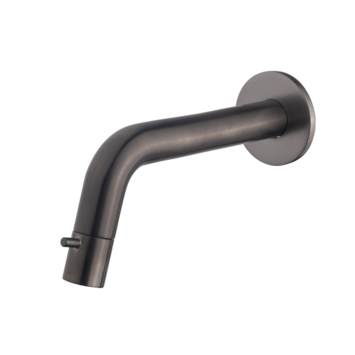 Op zoek naar een moderne fonteinkraan met karakter? Deze versie in gun metal geeft je badkamer of toiletruimte net wat extra’s. De kraan monteer je aan de muur en de uitloop kort je in op de gewenste lengte. Daardoor bepaal je precies hoe ver de kraan boven je fontein komt. De bediening is verwerkt in het uiteinde: geen knop of hendel in zicht. Door de straalbreker krijg je een rustige, gelijkmatige waterstraal. De gun metal afwerking is subtiel glanzend met een donkere ondertoon. Dat maakt ‘m opvallend maar ingetogen tegelijk.
