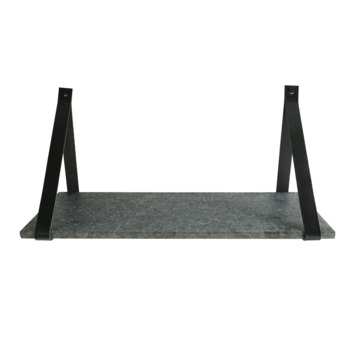 Mooie zwart marmeren wandplank. In combinatie met de leren plankendragers een leuk item voor aan je muur.
