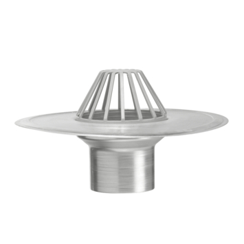 Aluminium kiezelbak voor toepassing op een plat dak. Voorzien van bladvanger die voorkomt dat er grind in de afvoerleiding wegstroomt.