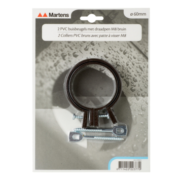 De Martens ophangbeugel met pen 60 mm bruin 2 stuks kan worden gebruikt voor het ophangen van een (bruine) regenpijp van 60 mm. Dit is een set van 2 beugels.
