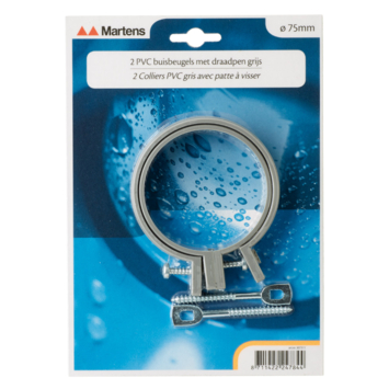 De Martens ophangbeugel met pen 75 mm grijs 2 stuks kan worden gebruikt voor het ophangen van een (grijze) regenpijp van 75 mm. Dit is een set van 2 beugels.
