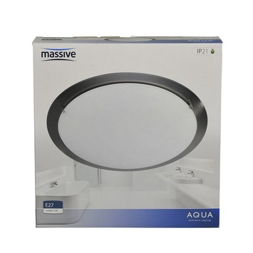 Massive 32021/17/10 Ceiling light. Kamer: Badkamer, Kleur van het product: mat chroom, Materiaal: Metaal. Fitting/voet-type: E27, Maximale wattage van vervangende lamp: 75 W. Garantie: 2 jaar. Stroomvoorziening: 230 V 50 Hz. Breedte: 350 mm, Hoogte: 9. 5 mm, Lengte: 35 cm