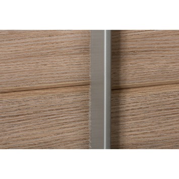 De Max zweefdeurkast (hxbxd) 200x150x60 cm in het houtdecor eiken is een fraaie, eigentijdse kast met soepel lopende zweefdeuren. Deze kast is verkrijgbaar in drie breedte-maten 120 cm, 150 cm of 180 cm. De kast is uitgevoerd met een moderne strak gevormde aluminium greeplijst die voorzien is van een stofstrip. De stofstrip zorgt ervoor dat er zo min mogelijk stof in de kast komt. De kastombouw is in dezelfde kleur als de zweefdeuren eiken en is opgedeeld in twee delen met elk een legplank en een kledingroede. Deze indeling is uit te breiden met een legplankenset van drie stuks en een ladeblok met twee of drie laden voor optimaal opberggemak. De Max zweefdeurkast ook verkrijgbaar in twee moderne houtdecoren: wit met houtnerf en ijswit grenen.