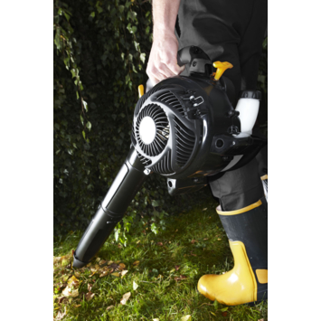 De McCulloch GBV345 bladblazer op benzine is een draadloze éénhandsblazer die blaast, zuigt en vermaalt. De bladblazer versnippert het tuinafval met een factor van 10 wat het volume van je tuinafval enorm vermindert. Het legen van de 45 liter opvangzak hoeft daarom minder vaak dan bij andere bladblazers. Het blaasvermogen van de McCulloch is in te stellen tot een maximum snelheid van 345 km/uur. Het is daarnaast ook comfortabel werken omdat de motor en het handvat in lijn liggen met de buis van de bladblazer. Hierdoor heb je tijdens het bladblazen nauwelijks last van vibraties en heb je minder snel last van vermoeide armen. Met deze bladblazer van McCulloch is je tuin in een mum van tijd weer helemaal opgeruimd.