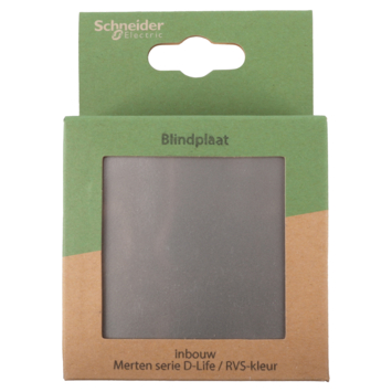 De Merten D-Life blindplaat edelstaal kun je gebruiken om je nog lege wandcontactdoos af te werken.