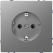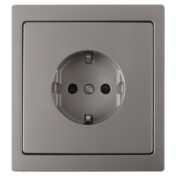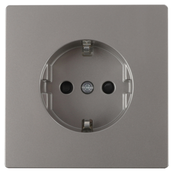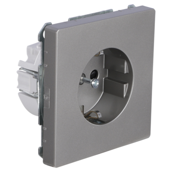 De Merten D-life stopcontact enkel geaard edelstaal. Randaarde beveiligt je apparatuur tegen oververhitting en kortsluiting.
