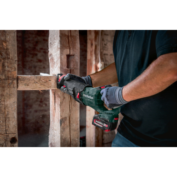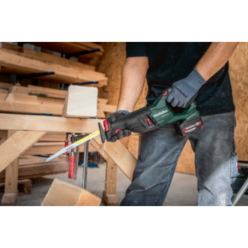 Universele accu-reciprozaag met haakse softgrip-handgreep voor optimaal comfort tijdens het werk Vario (V)-elektronica voor het werken met regelbare slagfrequentie aangepast aan het materiaal Inschakelbare pendelslag voor optimaal zaagvermogen Zaagblad 180° draaibaar om boven het hoofd makkelijk te kunnen werken Metabo Quick voor gereedschapsloze zaagbladwissel Gereedschapsloos verstelbare dieptegeleider voor optimaal gebruik van het zaagblad en veelzijdig gebruik zoals bijv. invalzagen Geïntegreerde LED-werklamp voor optimale verlichting van het zaagbereik Brede toepassingsmogelijkheden door middel van het afgestemde Metabo zaagbladprogramma Veel merken, één accu-systeem: dit product kan met alle 18 Volt accu-packs en laders van de CAS-merken worden gecombineerd: www.cordless-alliance-system.com