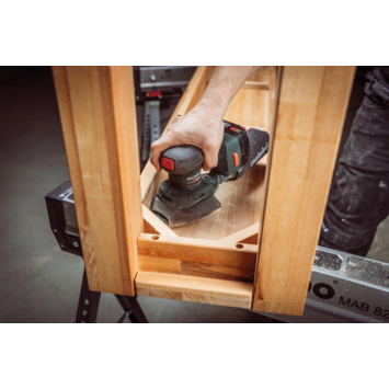 - Veelzijdige Multi-schuurmachine: Rechthoekig schuurblad ideaal voor hoeken, randen en kleine oppervlakken, met zorgvuldige geleiding dankzij de lage bouwhoogte.