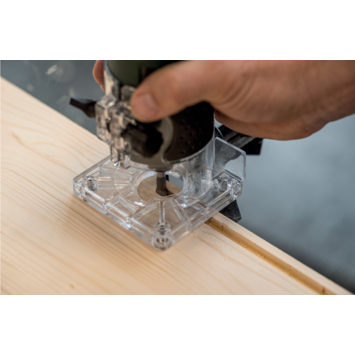 - Transparante grondplaat biedt maximaal zicht op het frezen en het werkstuk.