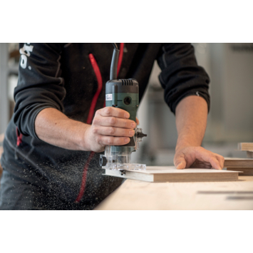 - Lichte en compacte kantenfrees voor eenhandig gebruik bij profielfrezen, trimmen en groeffrezen.