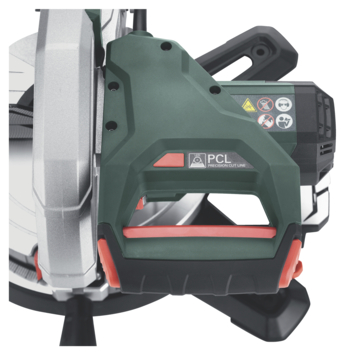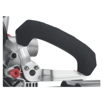 De zaag is uitgerust met een geïntegreerde spaanopvangtrechter die het werkgebied schoon houdt en een zachtaanloop voor de motor en aandrijving, wat bijdraagt aan een lange levensduur. Met de snelspanklem kun je werkstukken stevig vastzetten, zowel van boven als van voren, en de diepteaanslag maakt het eenvoudig om groeven te zagen. Alle bedieningselementen en schalen zijn intuïtief geplaatst en vanuit de werkpositie goed zichtbaar. De ergonomische greep zorgt ervoor dat de zaag met één of twee handen eenvoudig kan worden verplaatst, terwijl de bescherming van de zaagkop veilig transport garandeert.