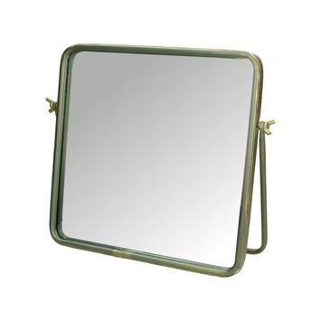 Deze spiegel 28,5x2x25 cm is niet alleen praktisch maar ook mooi om je interieur mee af te stylen. De gouden spiegel is van metaal en heeft een industrieel uiterlijk.