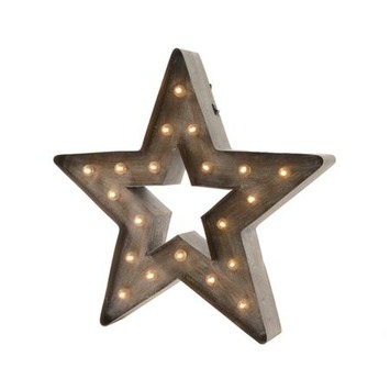 Ster van metaal in een vergrijsde kleur met 20 LED lampjes werkend op batterijen 2 AA (batterijen AA zijn niet bijverpakt). Geeft een extra sfeer op een slaapkamer, in de woon- en/of eetkamer. Afmeting Ø 37,5 cm.