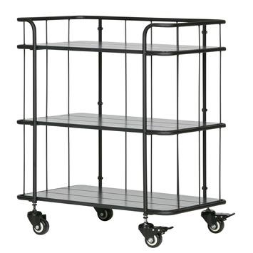 WOOOD trolley Caro is een stoer en klassiek meubel. De trolley heeft een zwart metalen frame en drie grenen legplanken die zijn afgelakt in een zwarte kleur. Door de gave vormgeving is deze trolley een aanwinst voor elk interieur. De afmetingen van de Caro trolley zijn (hxbxd) 84x75x42 cm. Het meubel heeft vier zwenkwielen, waarvan twee zwenkwielen zijn voorzien van een blokkeerstand.