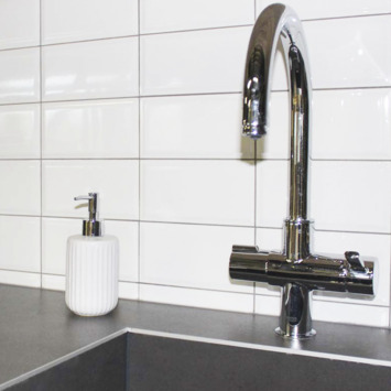 prima Metro wandtegel in de badkamer, halfsteensverband en zonder voeg tegen elkaar