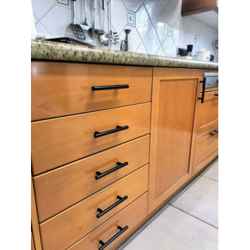 Deze meubelgreep is gemaakt van roestvrij staal met een gladde matzwarte afwerking. De greep is gemakkelijk schoon te maken met water en een zachte doek; ideaal om meubels in de keuken en badkamer een nieuwe uitstraling te geven. boorafstand 96mm, eenvoudig te installeren met de bijgeleverde schroeven.