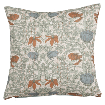Het Mila sierkussen fleurt iedere woonkamer op. De kussens hebben een vrolijke uitstraling met bloemenprint. Dit kussen is erg goed te combineren met andere kussens. Het kussentje is gemaakt van katoen en heeft een mintgroene kleur. De bloemen zijn lichtblauw en oranje. Een prachtig geheel! Daarnaast is de hoes voorzien van een rits om hem te kunnen wassen. Hoe ga jij het Mila kussen combineren? De afmetingen zijn 45 bij 45 cm.