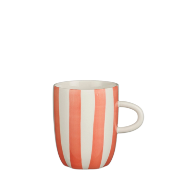 Voeg extra flair toe aan je tafelsetting met de roze-wit gestreepte mok. De schattige mok is gemaakt van steengoed en is bestend tegen de vaatwasser en magnetron. Hierdoor is hij erg geschikt voor dagelijks gebruik. Hij heeft een hoogte van 10 cm en een diameter van 8 cm.