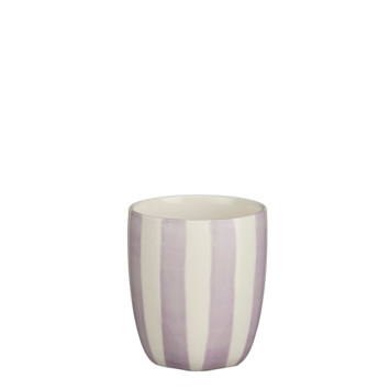 Voeg extra flair toe aan je tafelsetting met de paars-wit gestreepte beker. De schattige mok is gemaakt van steengoed en is bestend tegen de vaatwasser en magnetron. Hierdoor is hij erg geschikt voor dagelijks gebruik. Hij heeft een hoogte van 7 cm en een diameter van 8,5 cm.