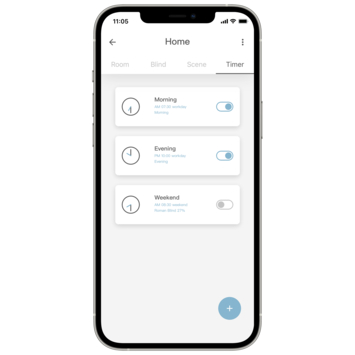 Met de gratis MotionBlinds app op je smartphone regel je elke instelling precies zoals jij dat wilt. Stel bijvoorbeeld timers in om je raamdecoratie op gezette tijden automatisch te openen of sluiten, of maak handige scènes voor elk moment van de dag. Dankzij een bereik van 20 meter werkt de bridge ook prima in grotere ruimtes. Het resultaat? Comfort en controle, precies wanneer je het nodig hebt.
