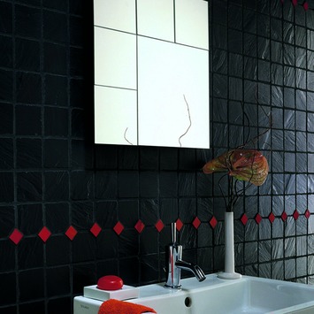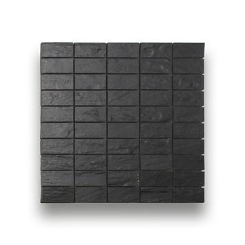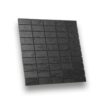 Zwart mozaiek met een relief. Geschikt voor wand in de badkamer en het toilet. Kan in combinatie met een strakke witte wandtegels.