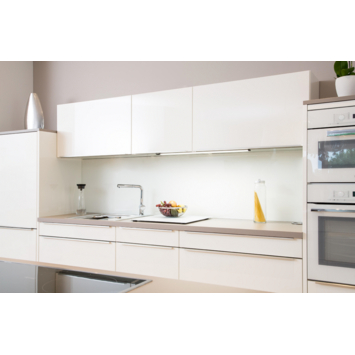 De LED-onderkastarmatuur Balic Sensor 50 zorgt voor optimale lichtomstandigheden en maximaal lichtcomfort. De armatuur heeft zowel een bewegingssensor als een afstandssensor. Als u de sensor met de schakelaar aan de zijkant op "M" zet, wordt de onderste sensor met dimmer geactiveerd. Met een simpele beweging van je hand zet je de verlichting onder de kast aan en uit. Door je hand onder de sensor te houden, dim je het licht tot de gewenste helderheid. Als de schakelaar op "D" staat, wordt de afstandssensor geactiveerd. Nu gaat het lampje aan als je hem bijvoorbeeld in een lade of kast hebt geïnstalleerd en trek je hem eruit of open je de deur. De lamp heeft een geïntegereerde ledlichtbron van 8 watt met een lichtopbrengst van 600 lumen en geeft een neutraal wit licht voor optimale werkverlichting.