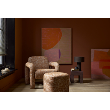 Deze muurdecoratie op canvas valt op door zijn warme kleuren en speelse vormen. Oranje, roze en paars komen samen op een beige achtergrond en geven elk interieur een vrolijke twist. Mooi boven een bank, lage kast of als statement aan een lege wand. Het canvas is strak gespannen in een smalle lijst en direct klaar om op te hangen. De afmetingen zijn L100 x B120 x H3,5 cm.